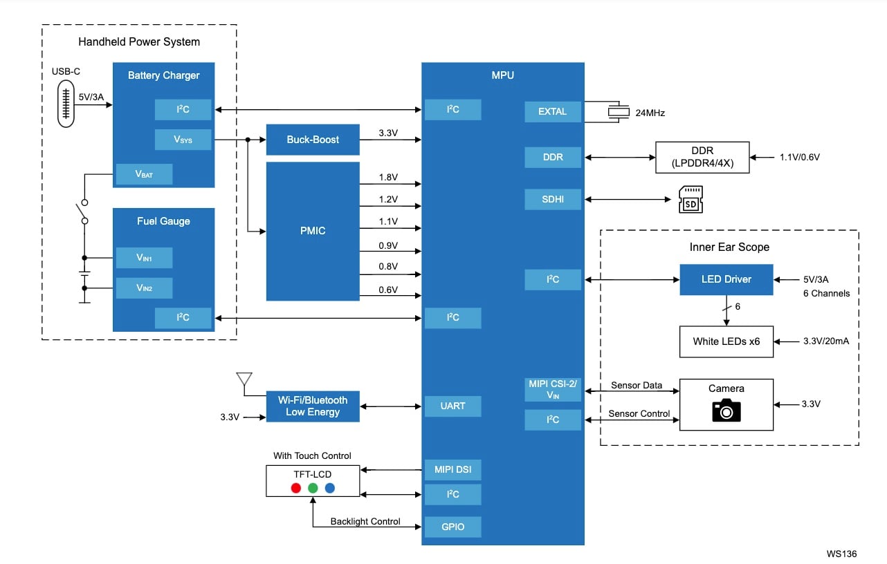 The design incorporates a Full HD video display with H.264 and H.265 support that delivers crystal-clear, real-time images to identify blockages or signs of infection in the ear canal, powered by a dual or quad Arm Cortex-A55 CPU.